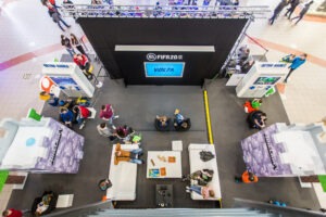 Połączyliśmy strefę gier – ogromną strefę gier ze spotkaniem z Naruciakiem. Realizowaliśmy serię eventów gdzie budowaliśmy strefy i organizowaliśmy spotkania z youtuberami.